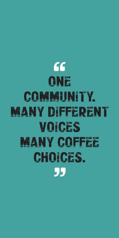 ONE ONE COMMUNITY. COMMUNITY. MANY DIFFERENT MANY DIFFERENT VOICES VOICES MANY COFFEE MANY COFFEE CHOICES. CHOICES.